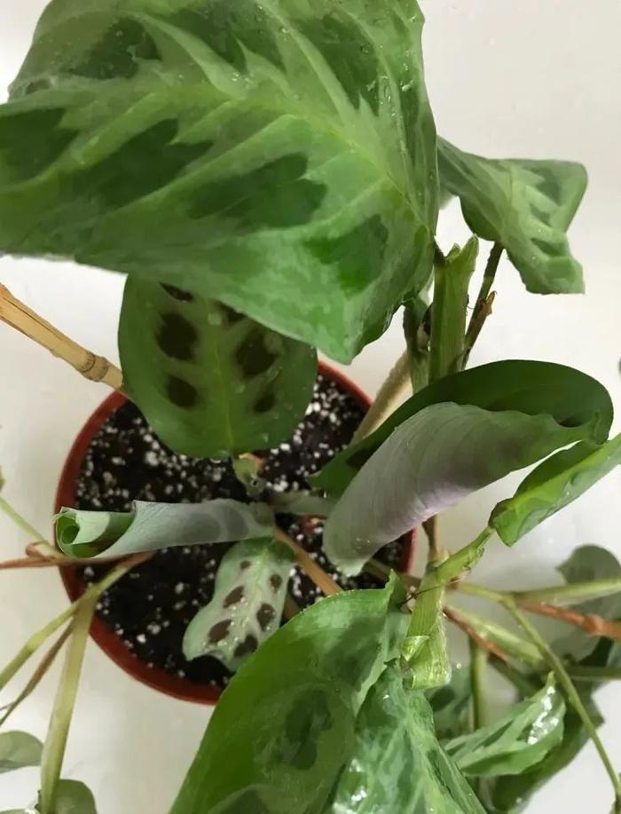 在众多观赏竹芋里,豹纹竹芋对水分的容忍度是比较好的,偶尔忘记浇水也没太大问题。如果长期忘记浇水,植入底部的叶子会逐渐干枯,再不给它浇水,就会导致整个植株枯萎。养护这种植物要保证盆土干透浇透,若是是养在阳光不多的地方,要避免土壤经常潮湿。