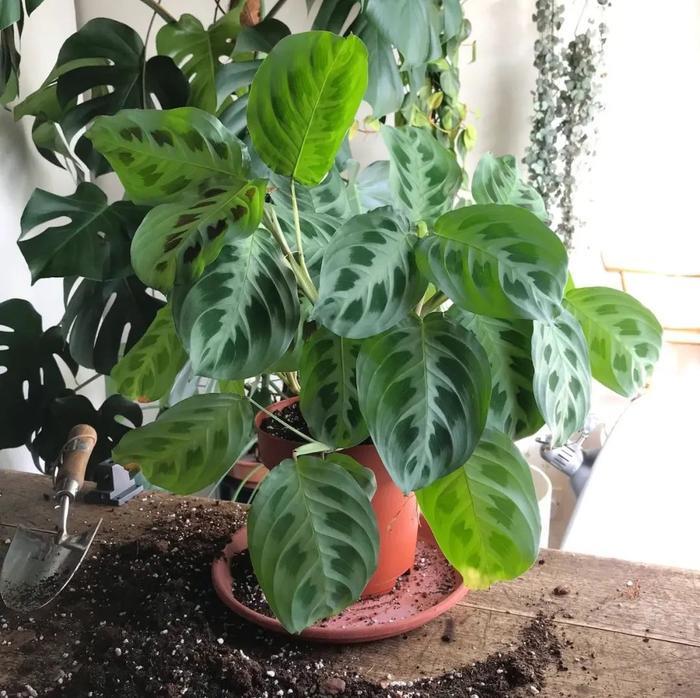 养护豹纹竹芋不需要经常换盆,它的长势比较缓慢,一般是每隔两年左右给它换一次盆就可以了。如果长势太差,一开始是不建议用太大的花盆养的,花盆越大,盆土的干湿就越难管理,对于新手来说就更难养了。