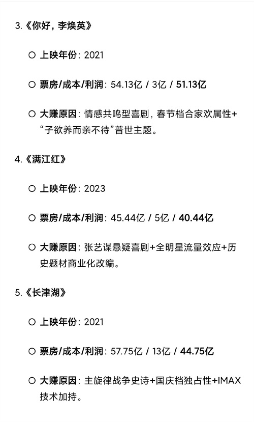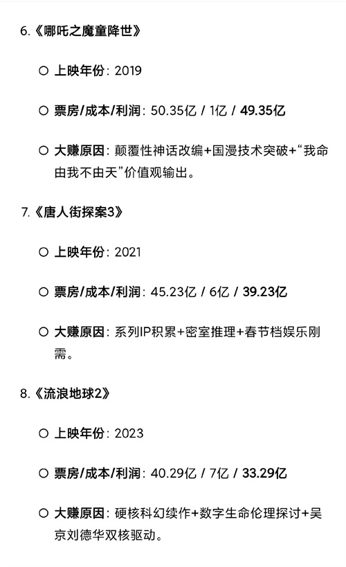 Deepseek分析:中国电影票房金榜,含金量十足
