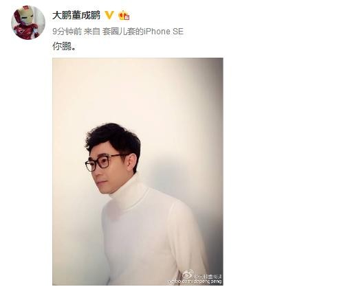 今天下午,大鹏在微博晒出一张照片并配文:你鹏。
