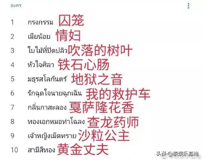 除了以上6部泰剧上榜,还有另外4部分别是:《戛萨珑花香》《查龙药师》《沙粒公主》《黄金丈夫》。